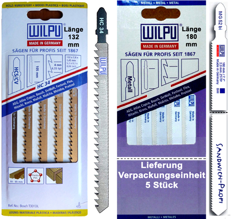 hinterschliffene und gewellte Standardsägeblätter sind mit
